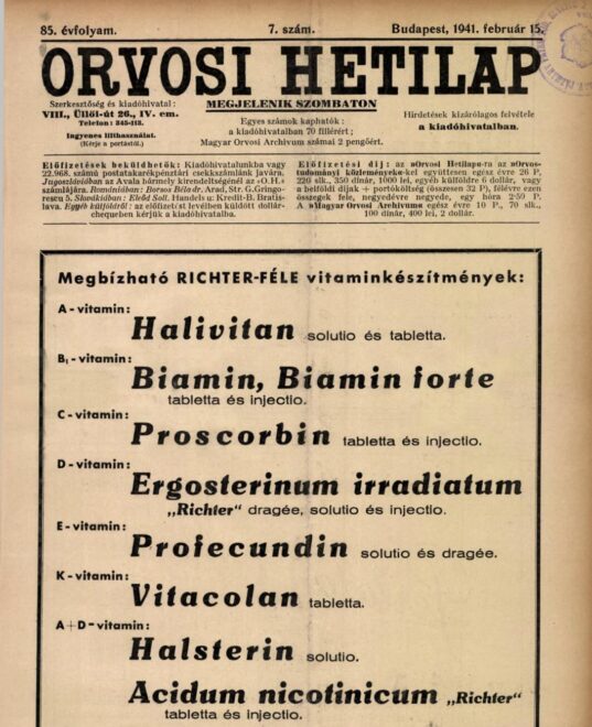 Este aztán a vacsora után, még az étkezőben a fiának szegezte a kérdést: hát te nem látod, hogy a Bandika, akarom mondani az Endre, csak turkálja az ételt? Nincs annak semmi baja anyám, ne aggódja túl magát. Különben is, 1941-et írunk, a tudománynak már mindenre van válasza, nemhogy egy kis étvágytalanságra. Ma megvettem az Orvosi Hetilap legfrissebb számát, ami két pengőmbe került és átforgatom. Gyermekorvos barátom, Gorka Kamilló szólt, hogy van egy új készítmény, ami segít az ilyen kákabélű kölyköknek, mint a miénk is. Állítólag ebben a lapban hirdetik. Utánanézek, hogy megnyugodjon maga is.